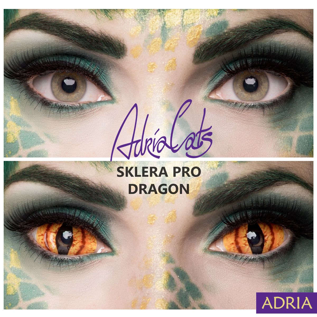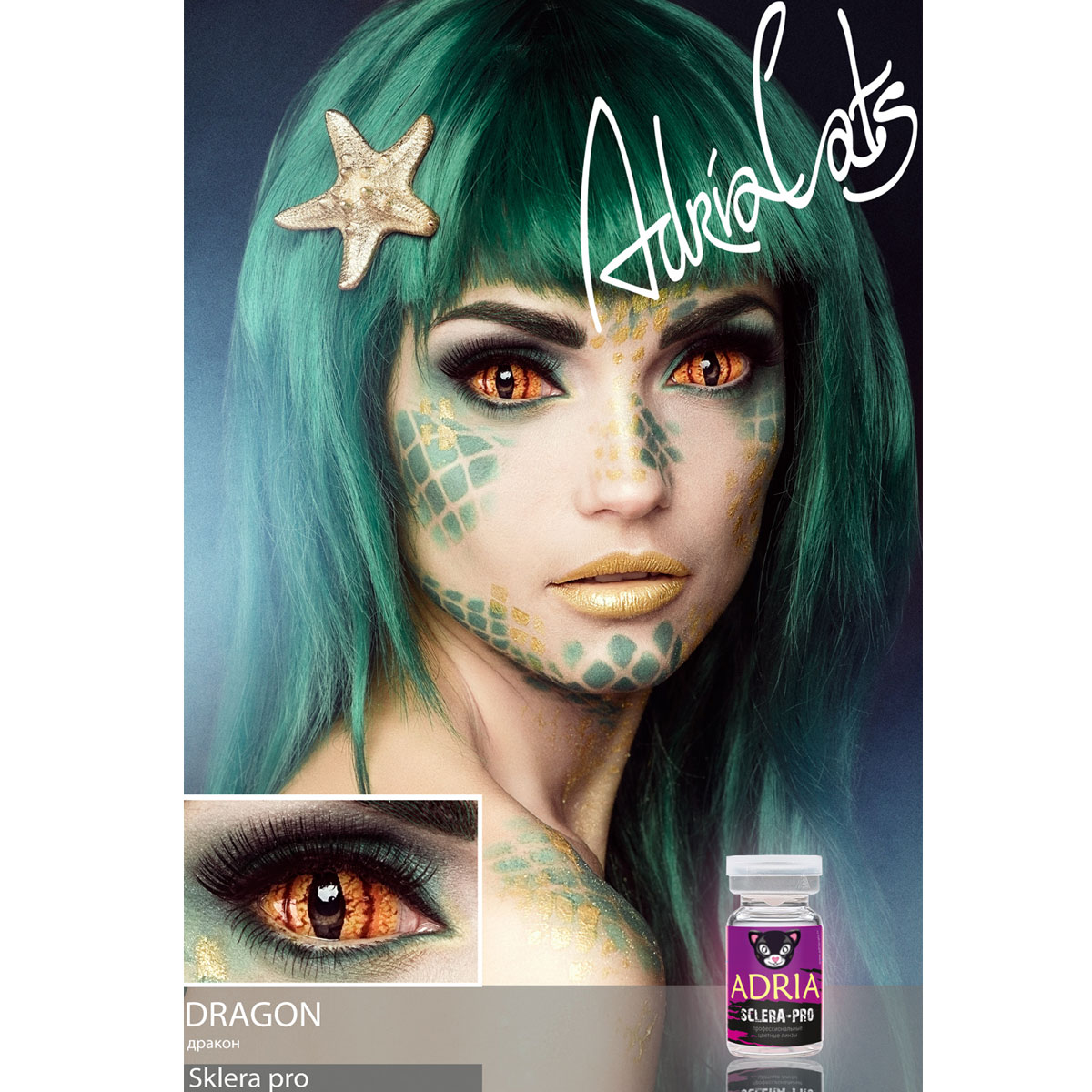 Если Вы хотите привлечь внимание к своему образу и по-настоящему удивить окружающих, рекомендуем заказать контактные линзы Sclera-Pro от известной торговой марки Adria (Склера-Про от Адриа). Их уникальность заключается в том, что они перекрывают не только радужную оболочку глаза, но и его белковую часть. В центре оптическое изделие выполнено наподобие кошачьего глаза, а по бокам разливается красно-оранжевыми оттенками, указывающими на сходство с мифическим животным. Не зря же данные средства коррекции носят название Dragon, что в переводе означает «дракон». Другая особенность средств контактной коррекции заключается в том, что они имеют призматический балласт. Мало кто из пользователей карнавальных линз знает, что это такое. Дело в том, что призматический балласт используется в основном при производстве контактной оптики, предназначенной для коррекции астигматизма, когда особенно важно, чтобы линза плотно держалась в глазу и не смещалась ни на миллиметр. Согласитесь, какой вид приобретут Ваши глаза, если «драконья» линза будет самостоятельно перемещаться? Кстати, это качество продукции высоко оценивают и пользователи в своих отзывах в интернете. Внимательно посмотрев на флакон, в котором находится Sclera-Pro, можно заметить надпись «профессиональные цветные линзы», которая размещена сразу под оригинальным изображением кошачьей мордашки. Пускай такое заявление производителя не кажется Вам излишне смелым и самоуверенным. Данная продукция разработана на основе уникального материала полимакон, прекрасно зарекомендовавшего себя, а высокое содержание влаги и пропускная способность кислорода делает эти линзы одними из лучших в данном сегменте. Цена оптических изделий немного выше стоимости аналогичной продукции, однако это оправдывается непревзойденным качеством и высоким уровнем безопасности.