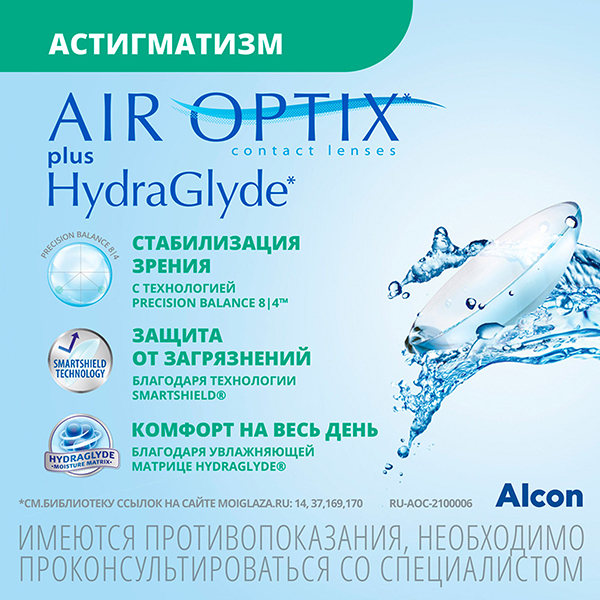 Торические контактные линзы «Эйр Оптикс плас Хайдраглэйд фор Астигматизм» Вы можете купить в нашем интернет-магазине по оптимальной цене с доставкой в любой регион РФ.