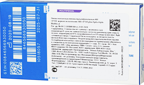 В нашем интернет-магазине Вы можете заказать упаковку контактных линз Air Optix Plus HydraGlyde Multifocal из 3 штук по выгодной стоимости с доставкой по России.