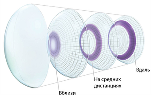 Поверхность линз разделена на оптические зоны, у каждой из которых своя функция. Одна обеспечивает зрение вдаль, другая — на ближнем расстоянии. За счет такой особенности модель эффективно корректирует пресбиопию.