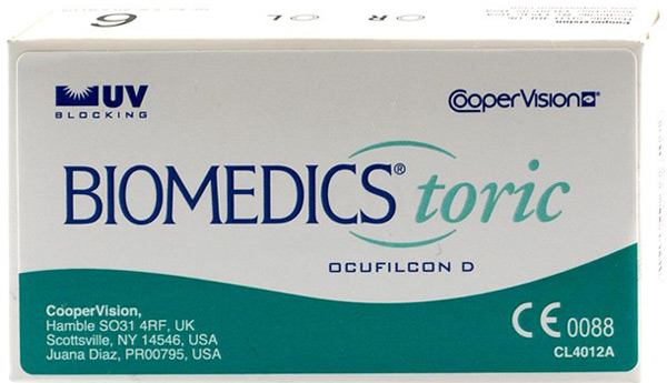 Biomedics Toric 6 pk от компании CooperVision (Биомедикс Торик от КуперВижн) являются одними из самых лучших современных контактных линз для коррекции астигматизма. Многочисленные отзывы покупателей свидетельствуют об их высоком качестве. Основным преимуществом торических линз Biomedics Toric 6 pk является четкая фиксация: даже при малейшем сдвиге зрительная картинка не смазывается. Такой эффект достигается благодаря запатентованной методике производства Biomedics Toric (SoftView Toric), которая позволяет удерживать линзы в правильном положении, потому ни моргания глаз, ни перемена положения тела не влияют на качество зрения. Данные торические линзы свободно смещаются, но при этом моментально возвращаются в нужное положение соответственно меридианам зрения. Асферическая конфигурация линз значительно расширяет поля зрения человеческого глаза и позволяет носить линзы Biomedics Toric в любое время суток. Они имеют очень ровную поверхность, которая не позволяет скапливаться белковым элементам.