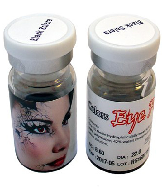Карнавальные контактные линзы Black Sclera (Блэк Склера) сделают вашу внешность очень необычной: ваш глаз, как белок, так и радужная оболочка, станет полностью черным. Такие линзы будут прекрасным дополнением к маскарадному костюму, а могут и вовсе его заменить. Со склеральными линзами Black Sclera G&G можно создать великолепный образ на Хэллоуин.. Возможно, в первый раз надевать такие линзы будет непривычно из-за их большого диаметра. Также возможно небольшое искажение цветовосприятия. Поэтому контактные линзы Black Sclera не предназначены для длительного ношения, не рекомендуется их использование за рулем. Однако достоинств у этих линз множество, как отмечают в своих отзывах опытные пользователи. Пигмент линзы не окрашивает роговую оболочку глаза и не вызывает аллергии. Но самое главное — это их потрясающий внешний вид. На нашем сайте вы сможете заказать склеральные маскарадные контактные линзы Black Sclera по выгодной цене, а также купить необходимые средства по уходу за ними. Специальные контейнеры для этих линз идут в комплекте.