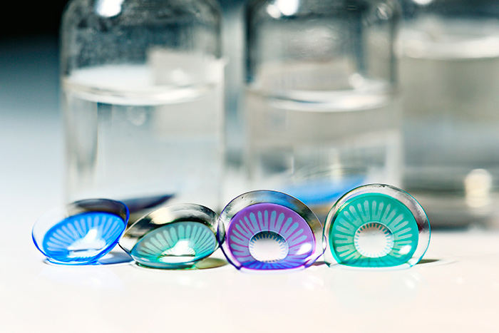 Такие линзы состоят из нескольких слоев, как правило, трех. В центре располагается слой с внедренным в него окрашивающим пигментом. Два других слоя, изготовленных из гидрогеля, образуют внутреннюю и внешнюю поверхности офтальмологического изделия. Они защищают роговицу от краски, а следовательно, от возможного раздражения или аллергической реакции. В зависимости от интенсивности цвета такие линзы делятся на три вида: оттеночные, карнавальные и, собственно, цветные.