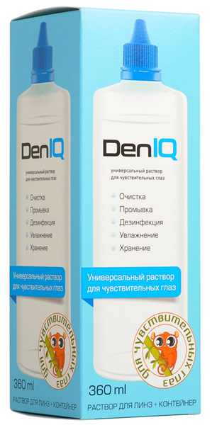 Раствор DenIQ от известной итальянской фирмы Soleko (Ден Ай Кью от Солеко) — это продукт премиум-класса по уходу за контактными линзами. Уникальный состав включает в себя специальный увлажняющий компонент (гидроксиэтилцеллюлоза) и средство, тонизирующее функции мембран клеток (таурин). Также в него не входят консерванты, поэтому использование данного раствора не повредит здоровью глаз и не станет причиной возникновения аллергической реакции.