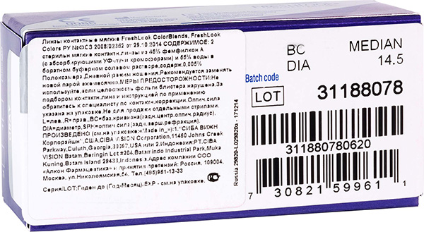 Контактные линзы FreshLook ColorBlends (Фреш Лук КалорБлендс) от компании Alcon (CIBA Vision) способны корригировать зрение у людей с миопией, или близорукостью. Световые лучи, проходя через оптический диск (контактную линзу), изменяют длину волны, и до центра восприятия доходит неискаженное изображение без расплывчатости и смазывания контуров.