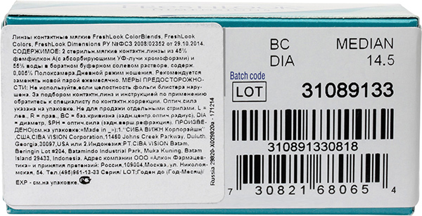 Контактные линзы FreshLook Dimensions пропускают кислород к роговице глаза и содержат достаточный уровень влаги (55%), что делает процесс их ношения незаметным и безвредным для глаз. Дополнительно такие контактные линзы оснащены фильтром против ультрафиолетового облучения.