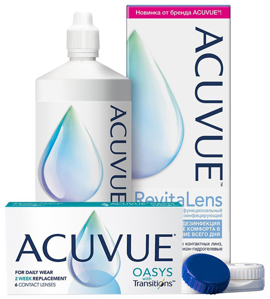 Комплект Аcuvue Oasys with Transitions 6 шт и раствор Acuvue Revitalens 300 мл