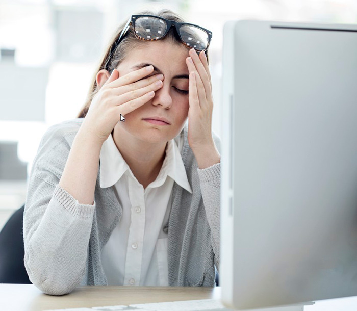 Когда человек смотрит на экран ПК, ему приходится постоянно напрягать глаза, чтобы «поймать» мерцающую картинку. В результате количество морганий сокращается примерно в пять раз. Глаза перестают получать нужное количество влаги, слезная пленка не обновляется, и человек испытывает дискомфорт. Зрительные органы краснеют, чешутся, иногда начинается болевой синдром.