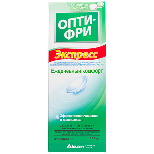 Многофункциональный раствор Opti-Free Express (Опти-Фри Экспресс) не только надежно дезинфицирует и хорошо увлажняет контактные линзы, но и сохраняет их свежими в течение всего времени ношения. Даже вечером вы будете ощущать свои линзы такими же удобными и приятными, как рано утром, когда вы их только надели.