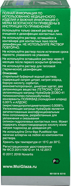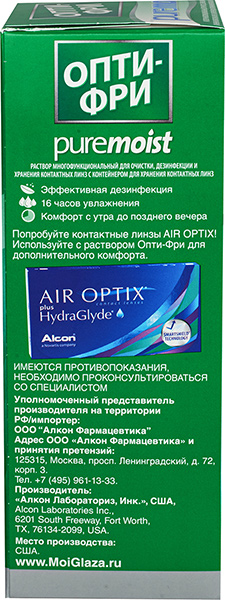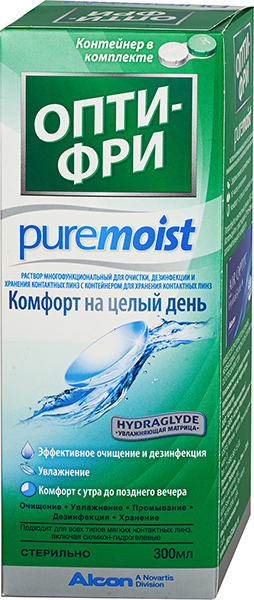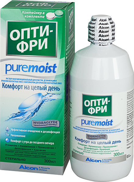 Одним из самых удачных многоцелевых растворов в настоящее время является Opti-Free PureMoist (Опти Фри ПьюрМоаст) – разработка специалистов компании Alkon. Своим появлением он продолжил пользующуюся достаточно устойчивым спросом линейку Opti-Free.