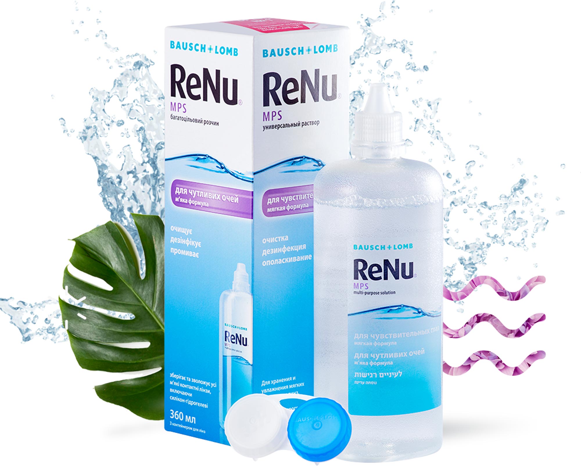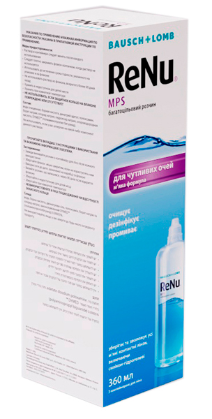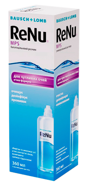 ReNu Multi-Purpose Solution (ReNu MPS) – это универсальный многофункциональный раствор. Он предназначен для ухода за контактными линзами, изготовленными из гидрогелевых или силикон-гидрогелевых материалов. Его формула была специально разработана для людей с особо чувствительными глазами, а также для тех, кто склонен к аллергическим реакциям. В результате этого даже если вы не могли носить контактные линзы из-за индивидуальной непереносимости растворов по уходу за ними, то с новым раствором ReNu MPS эта проблема останется в прошлом.
