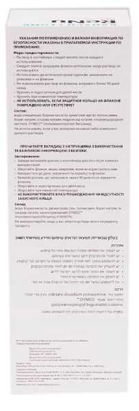 Для смягчения и увлажнения линз в рецептуру раствора производитель добавил такие вещества как хлорид и фосфат натрия, борную кислоту.