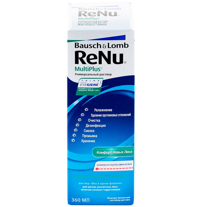 Раствор ReNu Multiplus – это одно из самых лучших средств для ухода за контактными линзами. Он очищает, надежно дезинфицирует и отлично увлажняет их. Его можно использовать для любого типа контактных линз.