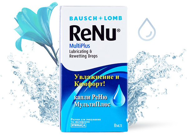 Капли ReNu MultiPlus Lubricating & Rewetting Drops (РеНью МультиПлас Лубрикейтинг энд Руэтинг Дропс) от Baush & Lomb (Бауш Энд Ломб) созданы специально для стабилизации необходимого уровня влаги в глазах. Если вы только начали пользоваться контактными средствами коррекции, то вы можете купить представленные капли, которые, без сомнения, помогут устранить дискомфорт. Благодаря уникальной рецептуре капли отлично увлажняют средства контактной коррекции, тем самым обеспечивая их максимально удобное ношение. Кроме того, используя капли ReNu, вы можете продлить период эксплуатации ваших линз. Также заказать капли от Baush & Lomb рекомендуется тем, кто проводит много времени у монитора компьютера, либо работает в кондиционируемом помещении, где воздух особенно сух. Особая ценность этого средства заключается в возможности использовать его без предварительного извлечения линз из глаз. Отзывы покупателей подтверждают, что капли ReNu — это незаменимая помощь для глаз за привлекательную цену.